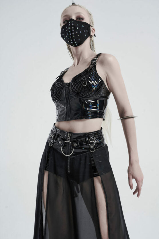 CORSET VEGAN SHINY HOLOGRAPHIC GOTHIC PIERCED STYLE TOP