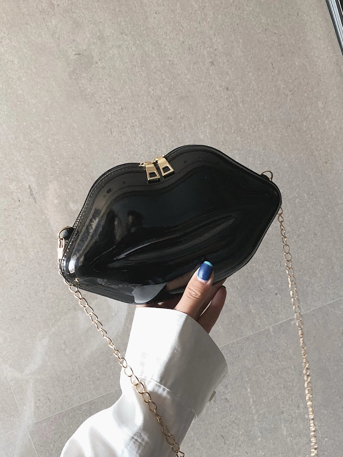 BE Oh SO KISSABLE with this vegan patent leather handbag. Great for date night, girls night out, or a photoshoot. Comes with 2 different straps for a custom look. Light-weight chunky-chain, or skinny chain for cross-body look. 2 color options available hot pink, or black.
